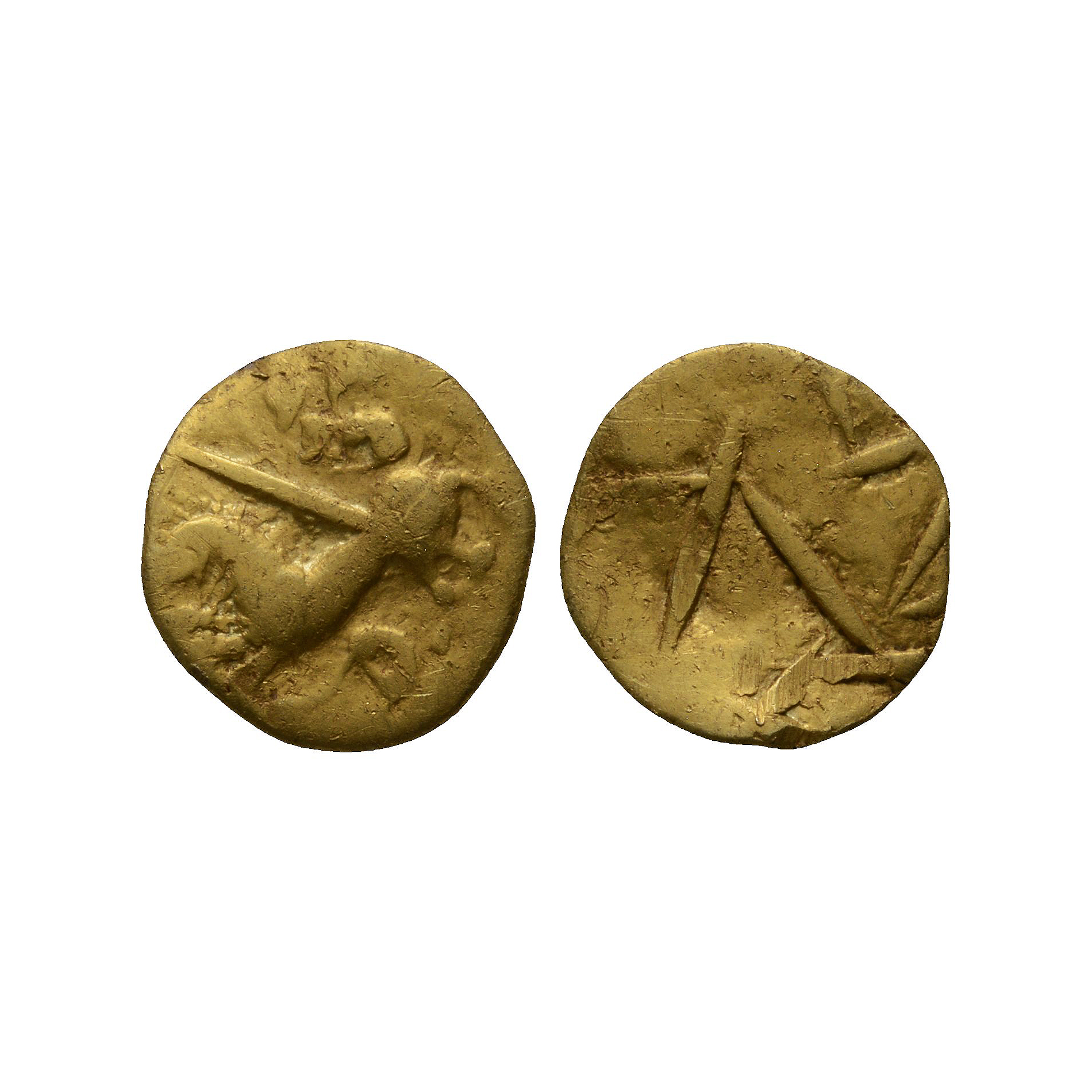 Celtic Iron Age Coins - Gallo-Belgic - Crossed Lines with Rider - AV Gold Quarter Stater 1st century B.C.