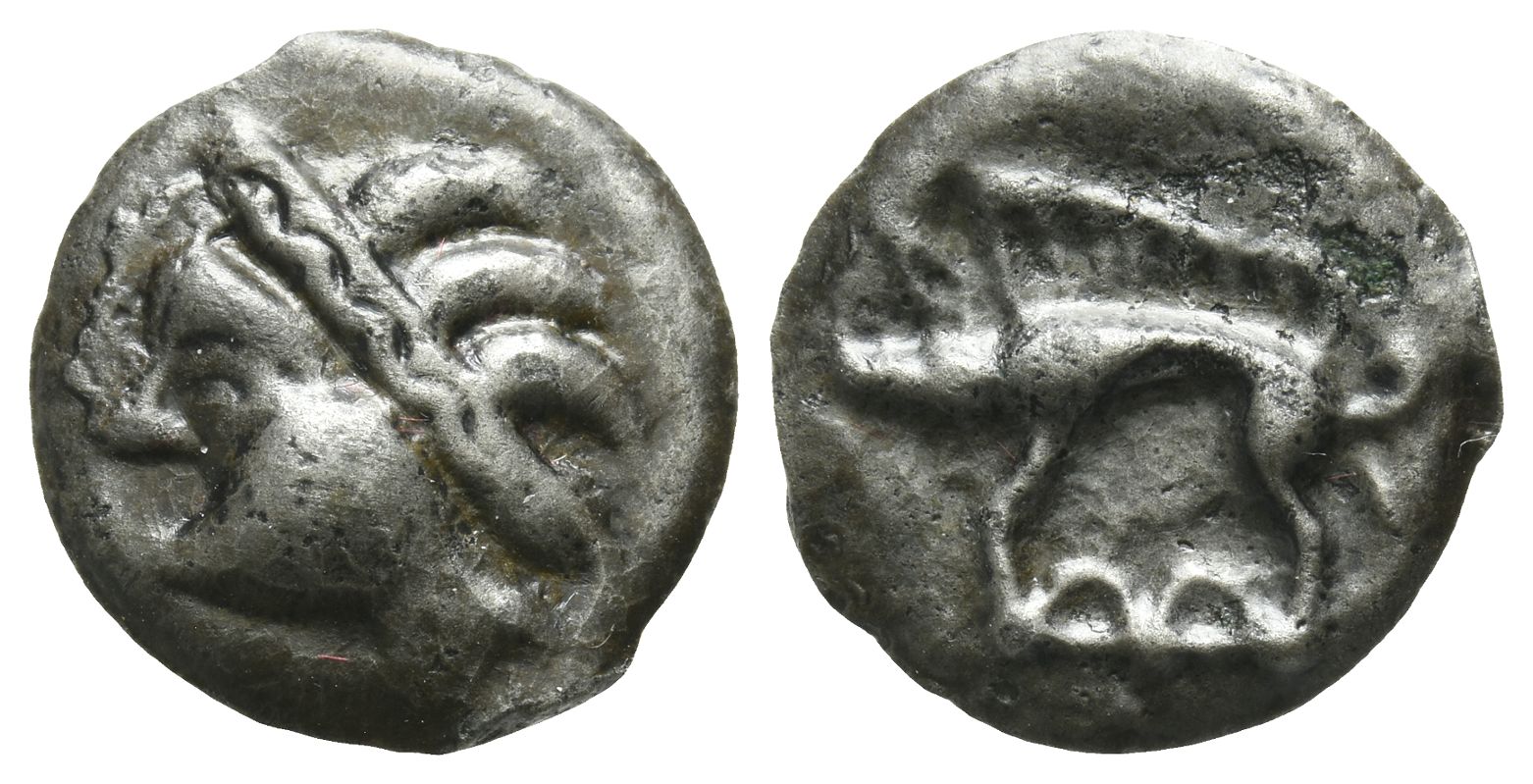 Diademed head left / Boar standing left; two semicircles below. D& 225; Depeyrot, NC VII, 225. 3.99gr, 18mm, 4h.