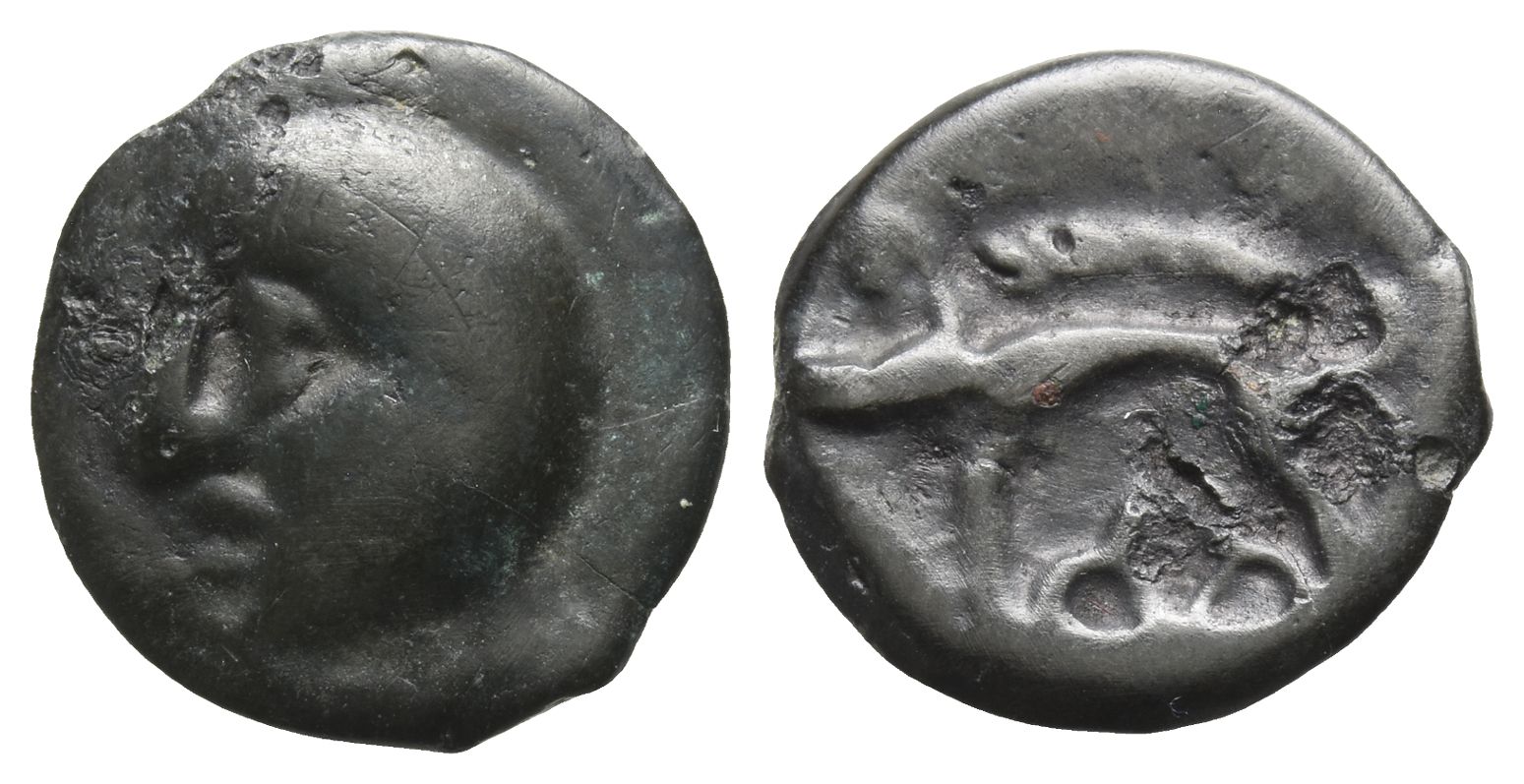 Bare head to left / Boar standing to left; three semicircles below. D&T 228; Depeyrot, NC VII, 141; CCCBM III 426-32. 2.94gr, 17mm, 4h.