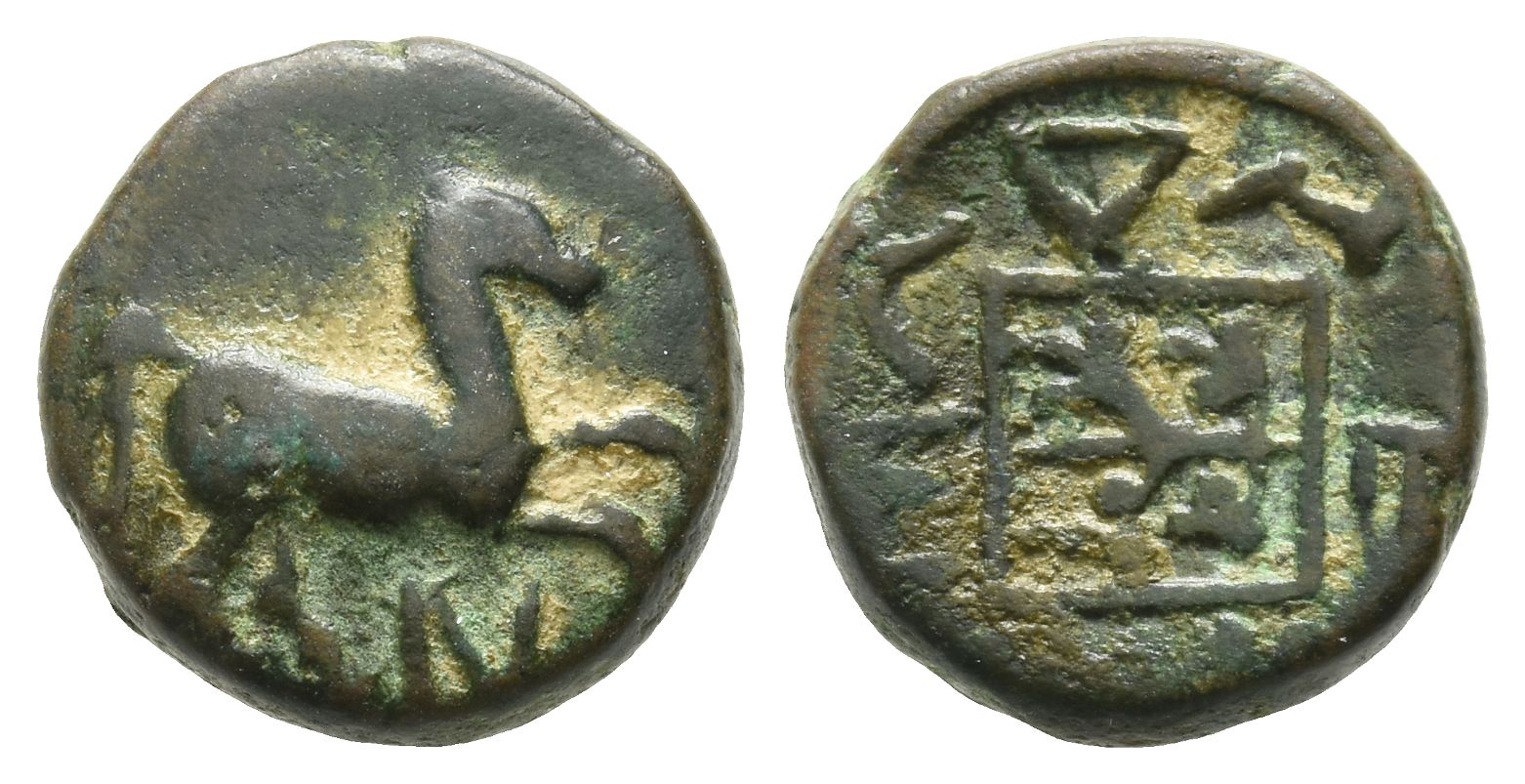 Imitation of Maroneia, Thrace issue. Horse standing to right; monogram below / Four bunches of grapes within linear square, blundered inscription around. For prototype cf. Schönert-Geiss 723; BMC 65-70. 4.14gr, 13mm, 9h.