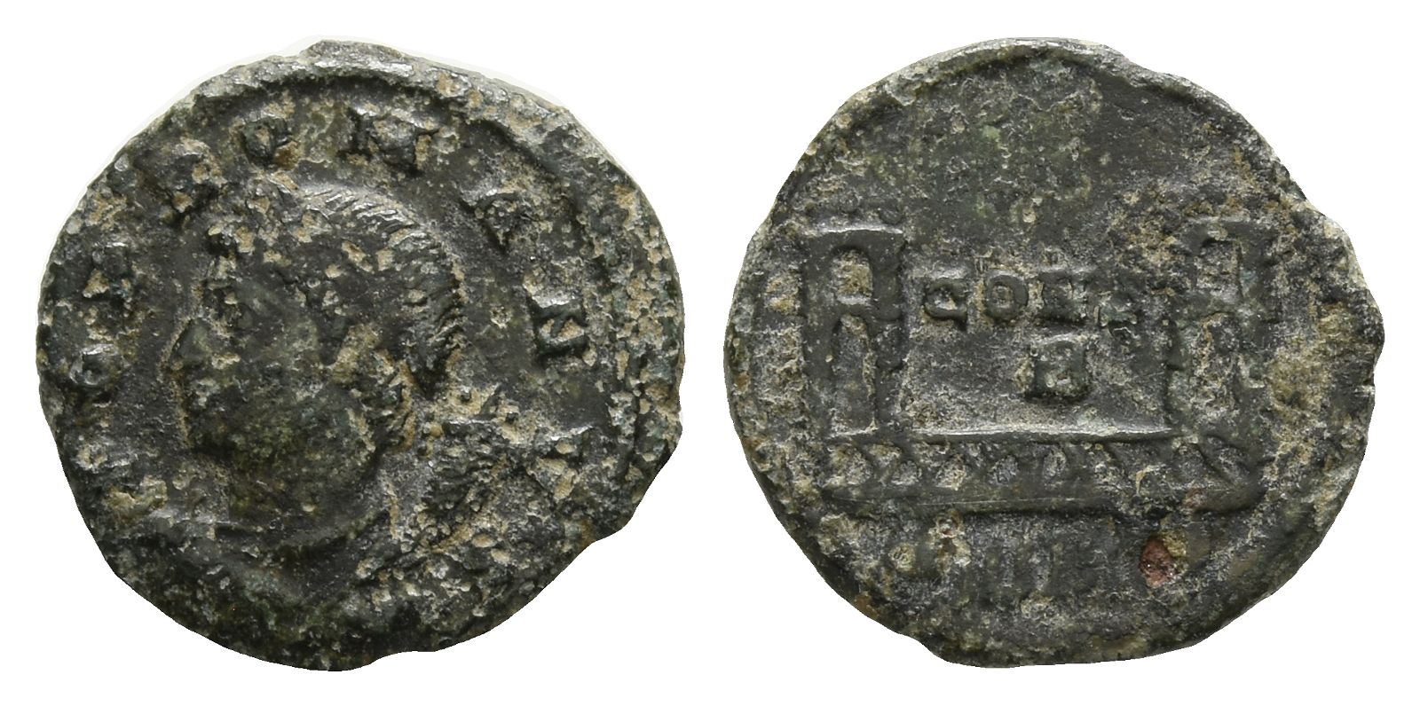 Constantinople mint; struck under Constantine I, AD 330. 2nd officina. POP ROMANVS, laureate and draped bust of Genius to left, cornucopia at shoulder / Milvian Bridge over the River Tiber, CONS B in two lines above. RIC VIII 21; LRBC 1066. 1.13gr, 14mm, 5h