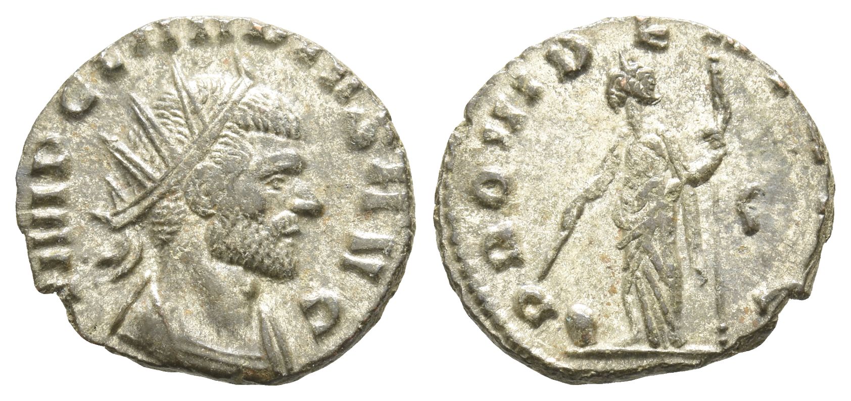 IMP CLAVDIVS AVG, radiate and cuirassed bust to right / PROVIDENT AVG, Providentia standing to left, holding baton over globe and long scetpre; ς in right field. RIC V.1 94 var.; MER-RIC 483 (temporary); Normanby 946. 2.63gr, 20mm, 12h.