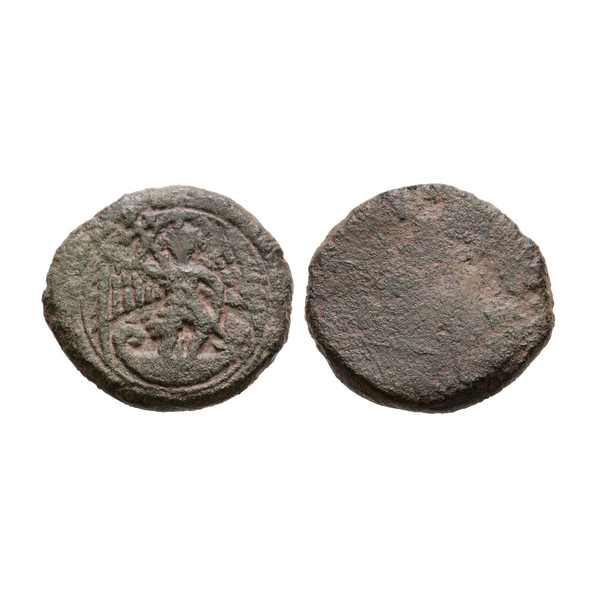 Round flan. Obv: St Michael slaying dragon. Rev: plain. 4.28 grams.