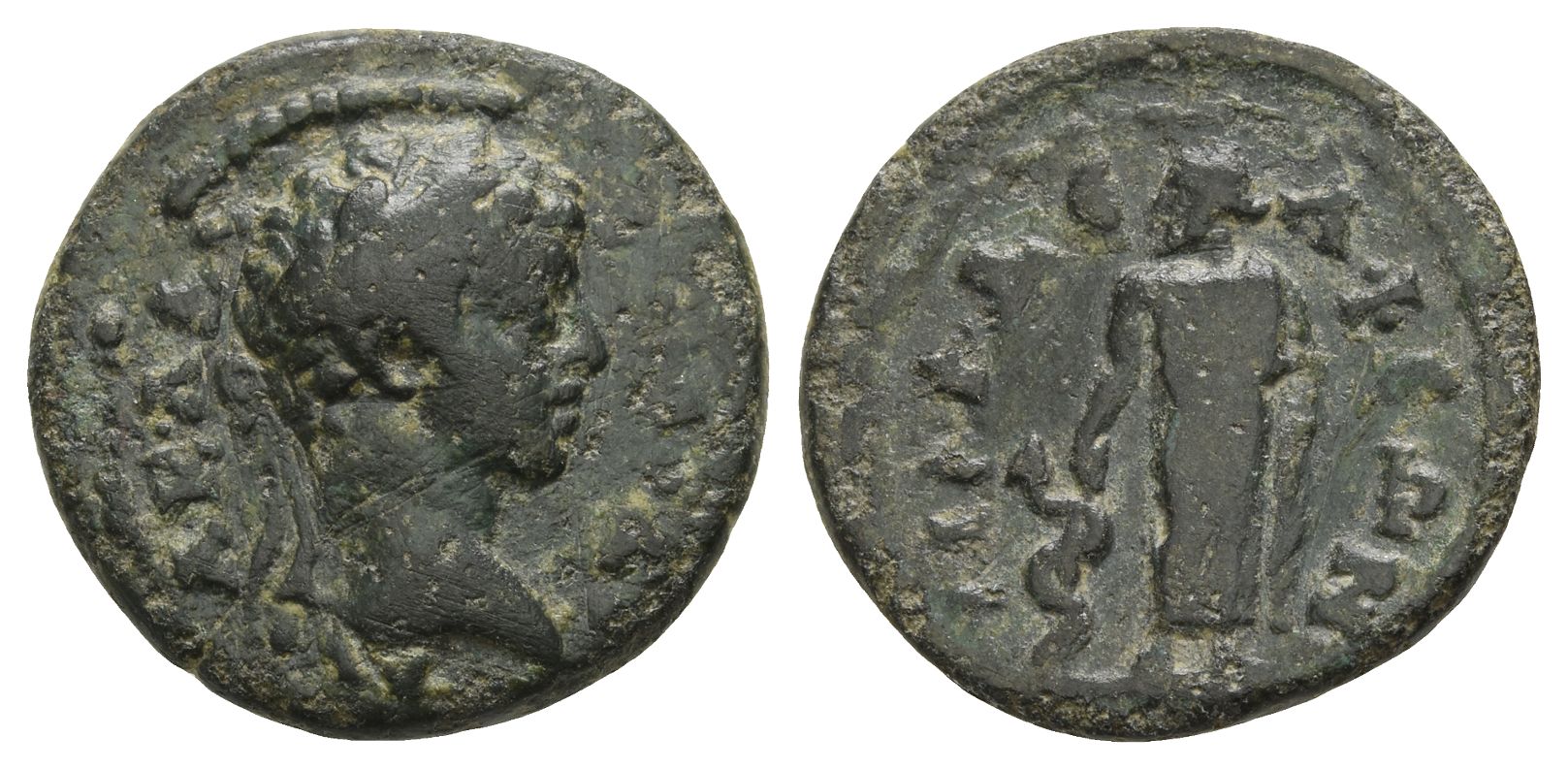 Struck AD 177-179. Α Κ • Λ ΑΥΡ ΚOΜOΔO ΑΥ[Γ], laureate young bust to right / ΦΙΛΑΔЄ-ΛΦЄΩΝ, Asclepius standing facing, head to left, holding serpent-staff. RPC IV.2, 1377 (temporary); GRPC Lydia 303. 5.02gr, 20mm, 6h.