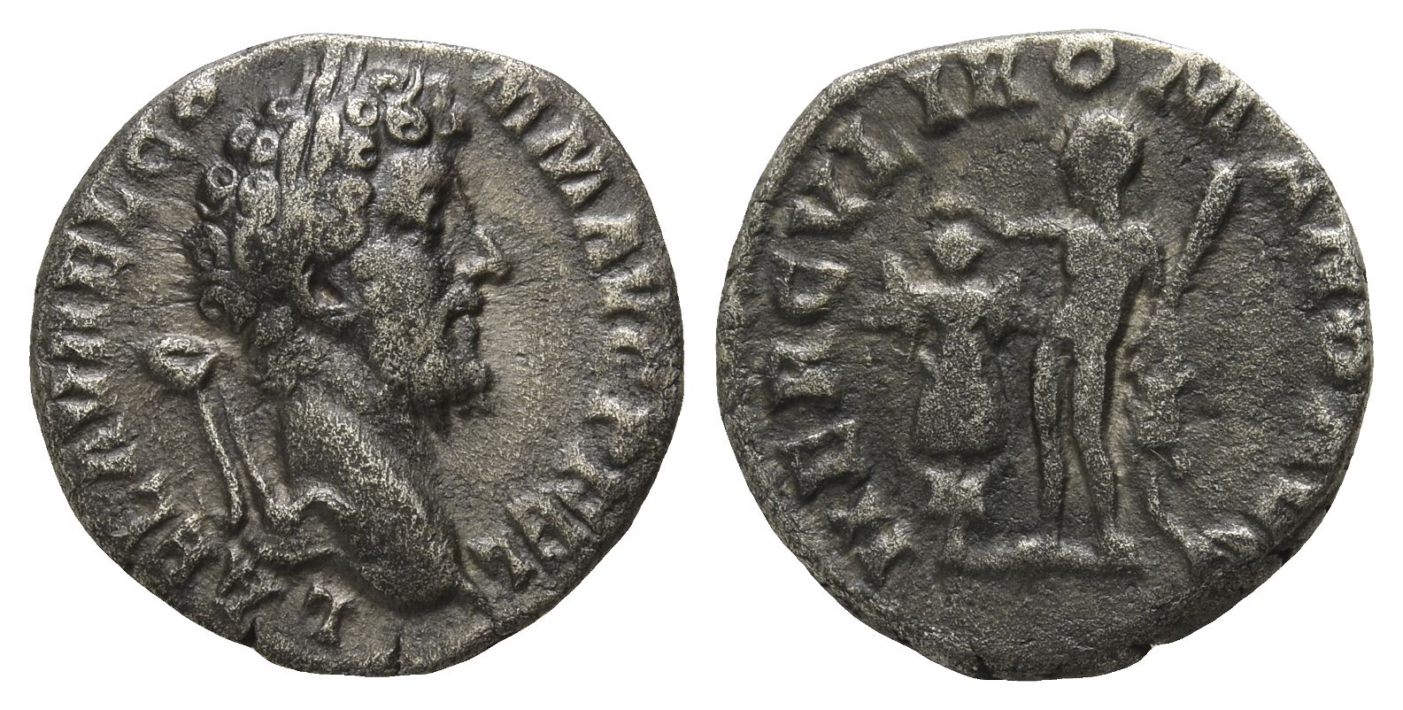Rome mint; struck AD 191-192. L AEL AVREL COMM AVG P FEL, laureate head to right / HERCVLI ROMANO AVG, Hercules standing to left, holding club and lion skin, crowning trophy. RIC 254a. 1.99gr, 17mm, 12h