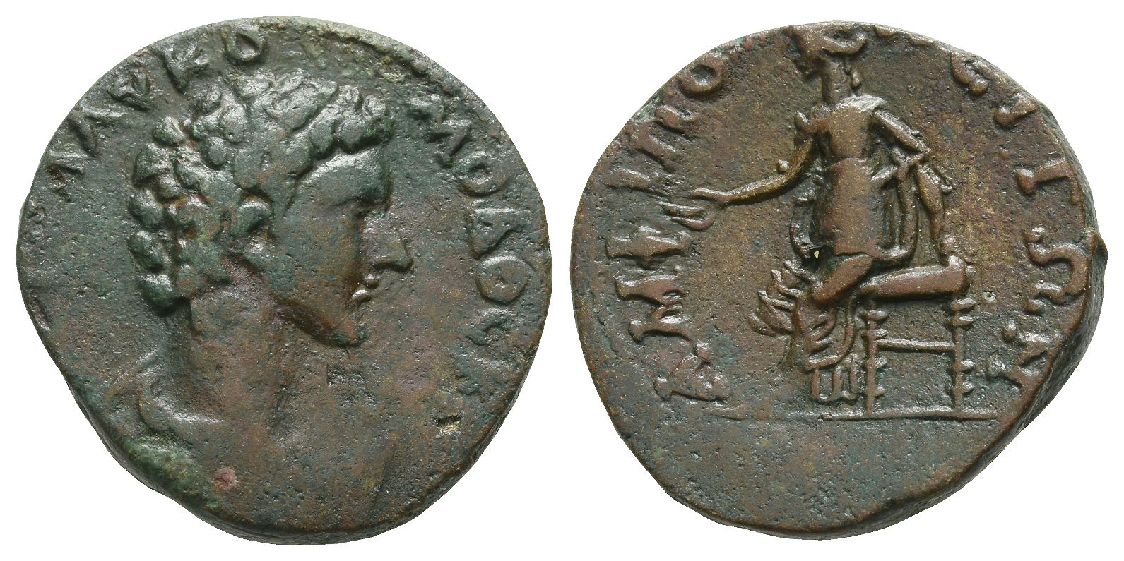 ΑΥΤΟ Λ ΑV ΚΟΜΟΔΟС ΚΑΙСΑΡ, bareheaded and draped bust to right / ΑΜΦΙΠΟΛЄΙΤΩΝ, Tyche enthroned to left, holding phiale. RPC IV.1 Online 4243 (temporary); BMC 115. 10.65gr, 25mm, 12h.