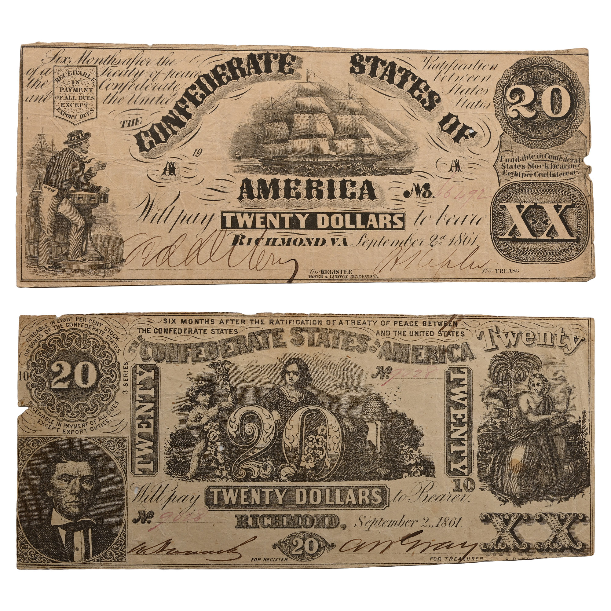 Back to previous pageConfederate States of America. Group of Two [2] Twenty Dollars T18 and T21. Richmond, 2 September 1861.