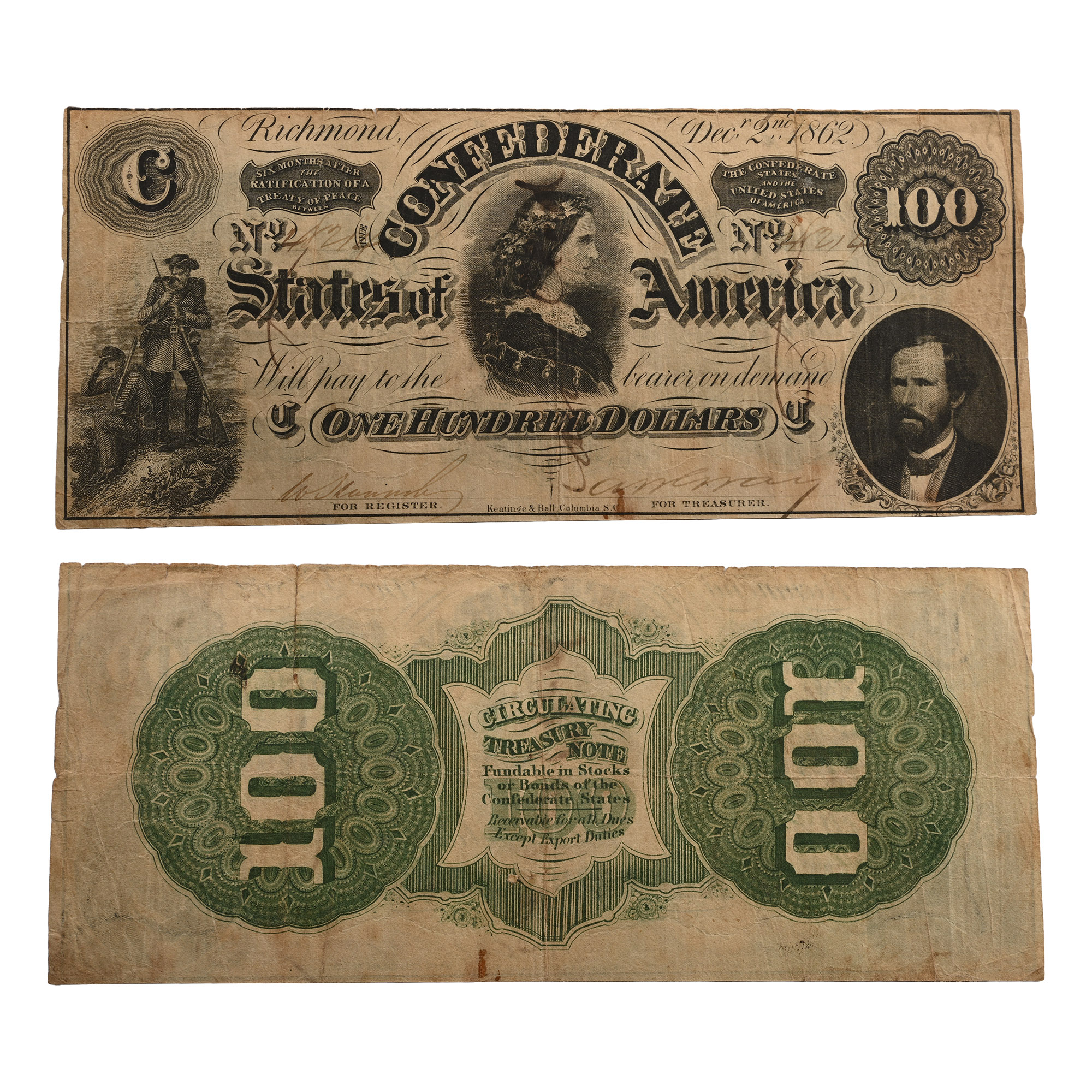 Back to previous pageConfederate States of America, One Hundred Dollars T49. Richmond, 2 December 1862. S/N: 4214.