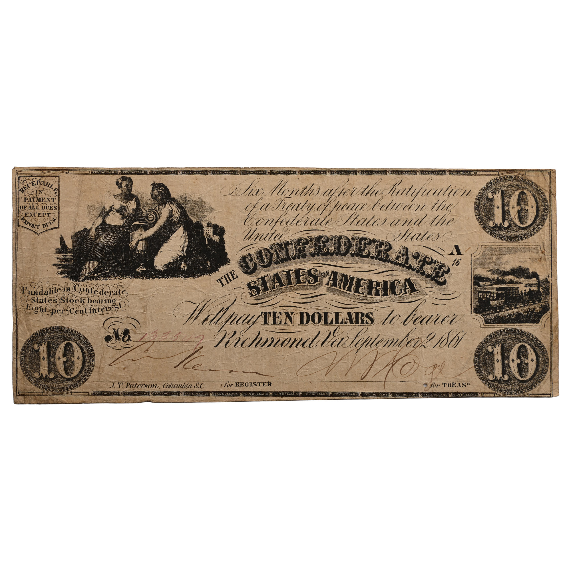 Back to previous pageConfederate States of America, Ten Dollars T28. Richmond, 2 September 1861. S/N: 133547.