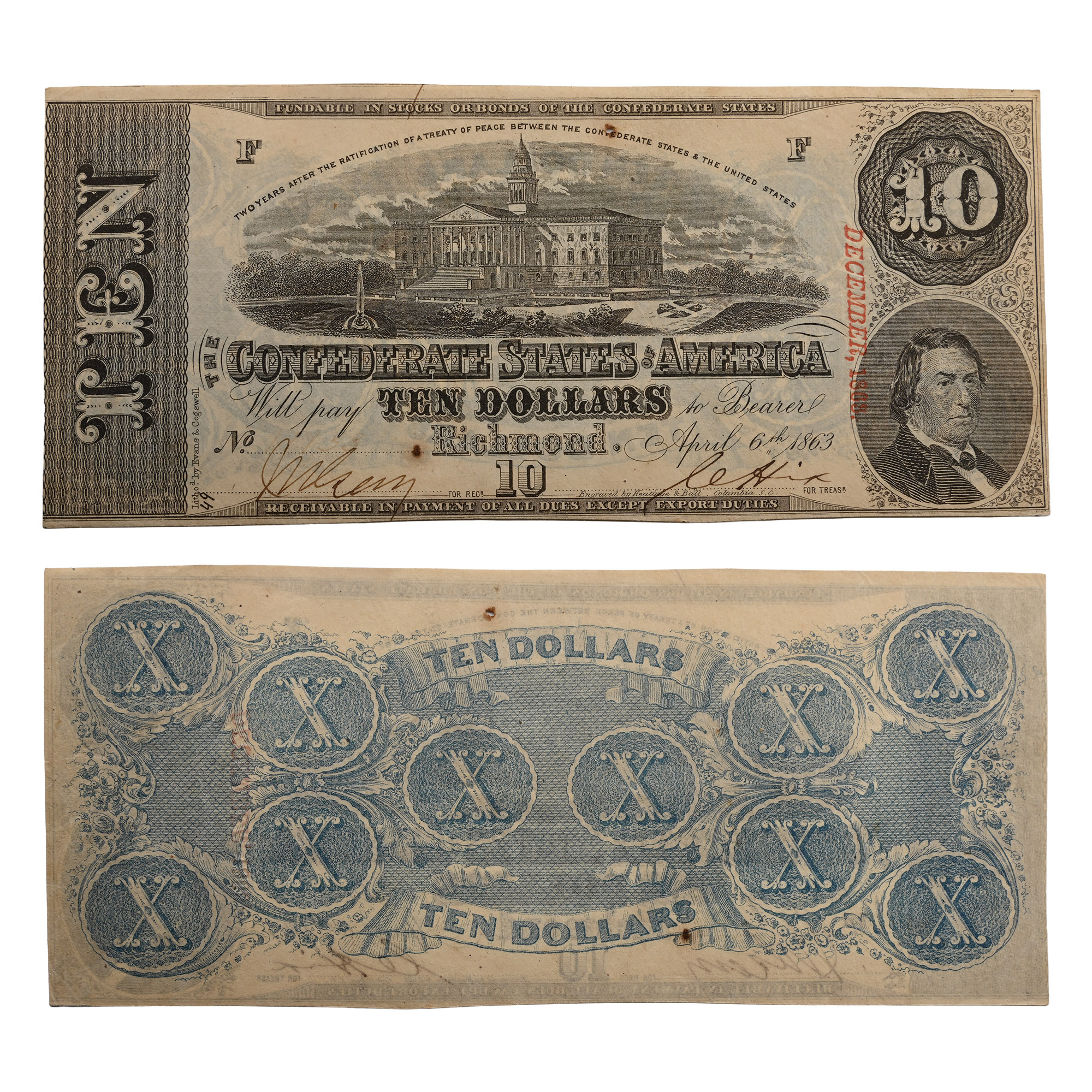 Confederate States of America, Ten Dollars T59. Richmond, 6 April 1863. S/N: 11133. Second series.