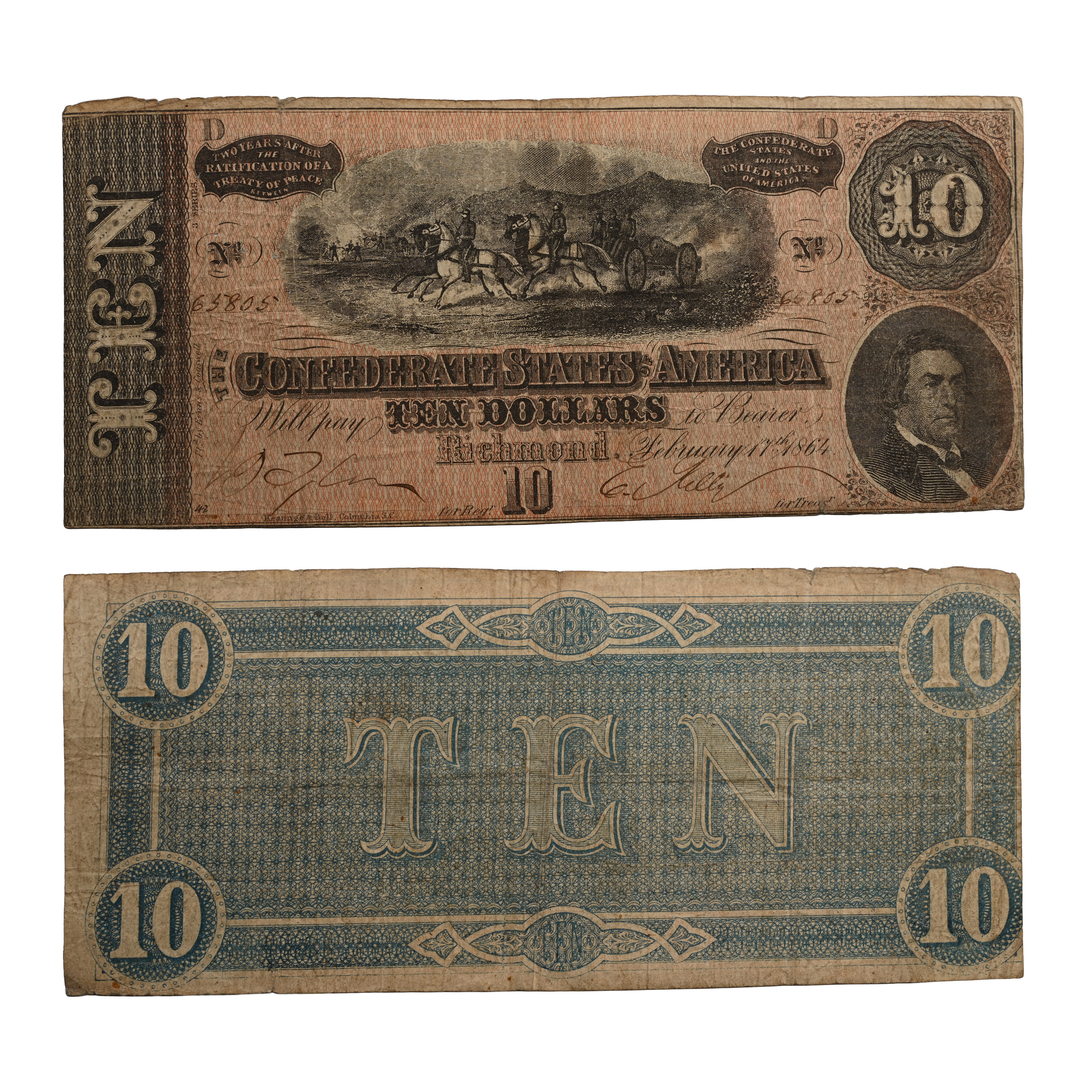 Confederate States of America, Ten Dollars T68. Richmond, 17 February 1864. S/N: 65805.