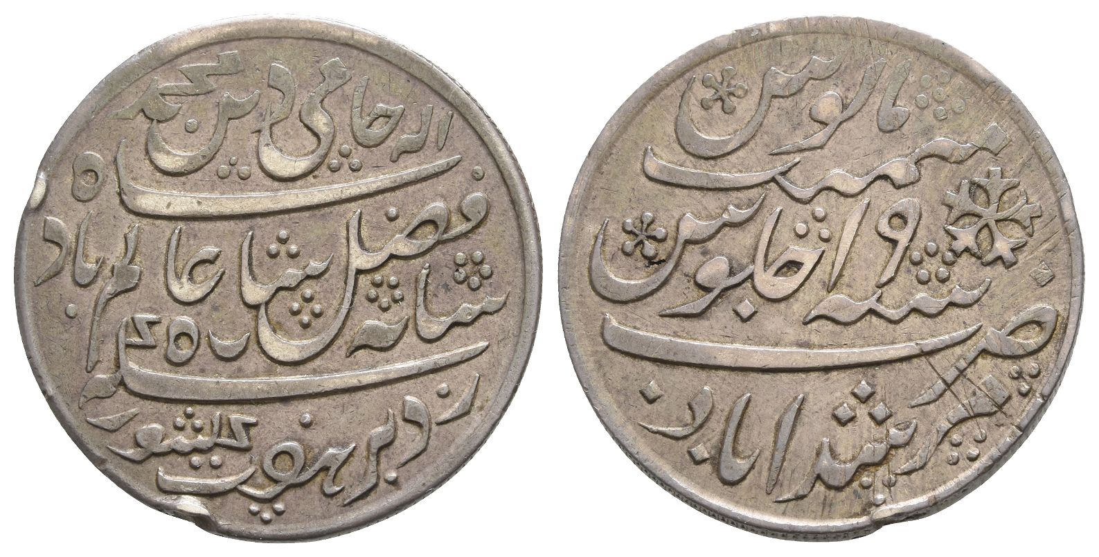 For prototype: Murshidabad (Calcutta) mint. Dated RY 19 of Shah Alam II. Persian couplet citing Shah Alam II / Mint formula and RY date. Pridmore 157; KM 99. 12.39gr, 29mm, 12h.