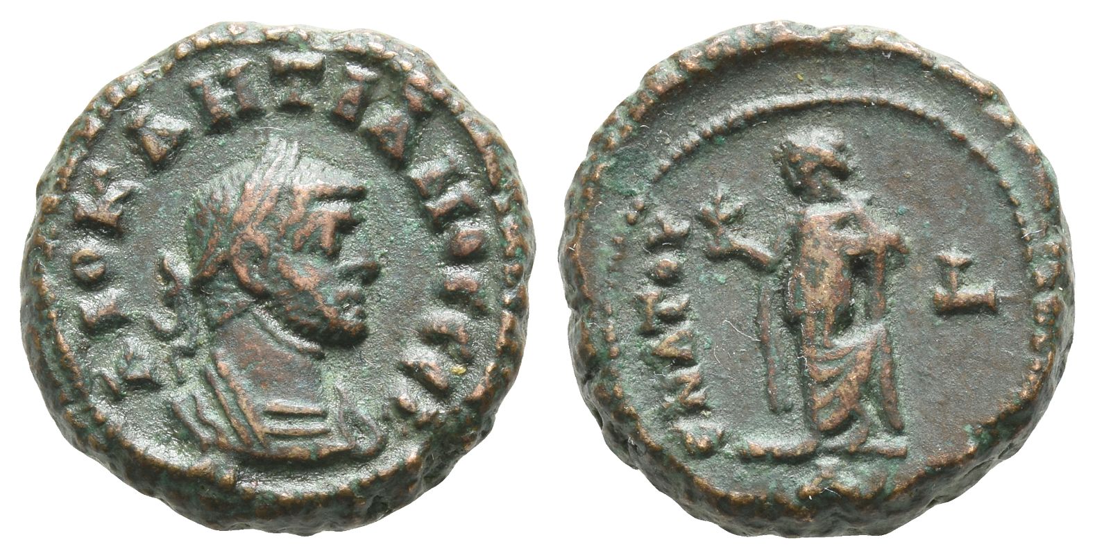 ΔΙΟΚΛΗΤΙΑΝΟC CЄΒ, laureate and cuirassed bust to right, seen from front / Elpis advancing to left, holding lotus flower and lifting hem of dress; L ENATOY (date) around, A or Δ (officina) in exergue. RPC X Unassigned ID 76463 or 76462; Dattari (Savio) 5674 or 5675. 8.49gr, 19mm, 12h.