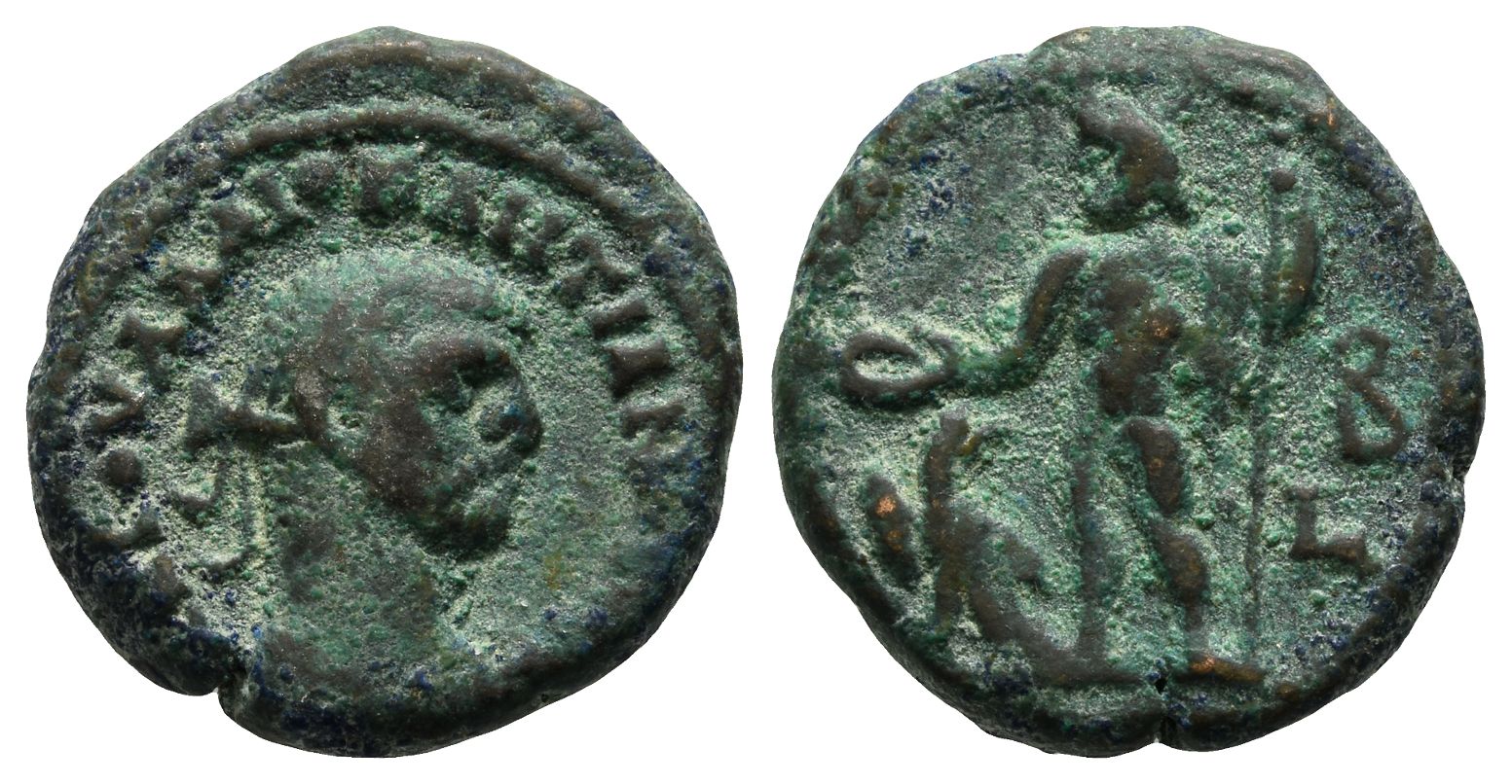 A K Γ OYAΛ ΔIOKΛHTIANOC CЄB, laureate and cuirassed bust to right / Zeus standing facing, head to left, holding patera and sceptre; L B (date) to right; at feet, eagle standing to left, head to right. Köln 3222; Dattari (Savio) 5774; K&G 119.24; Emmett 4087.2. 7,59gr, 20mm, 11h.