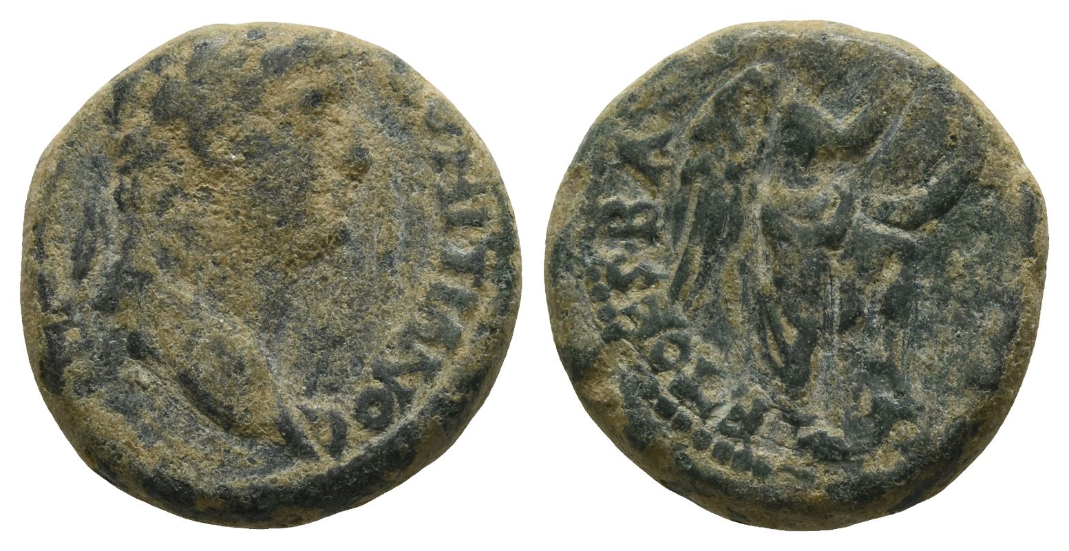 Domitian, with Agrippa II AE 18mm of Caesarea Panias, Judaea. 50-100 CE.