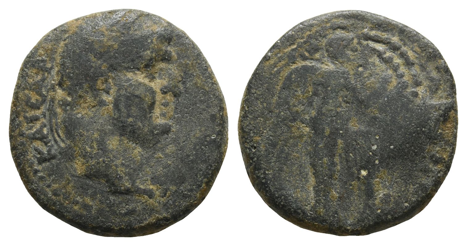Domitian, with Agrippa II AE 19mm of Caesarea Maritima, Judaea. Circa 50-100 CE.