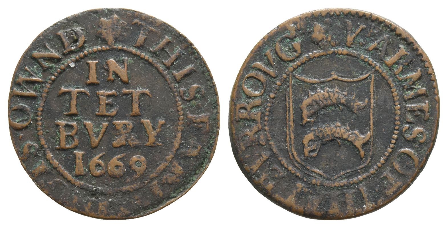 England. Arms of Tetbury AE Farthing Token. Dated 1669.