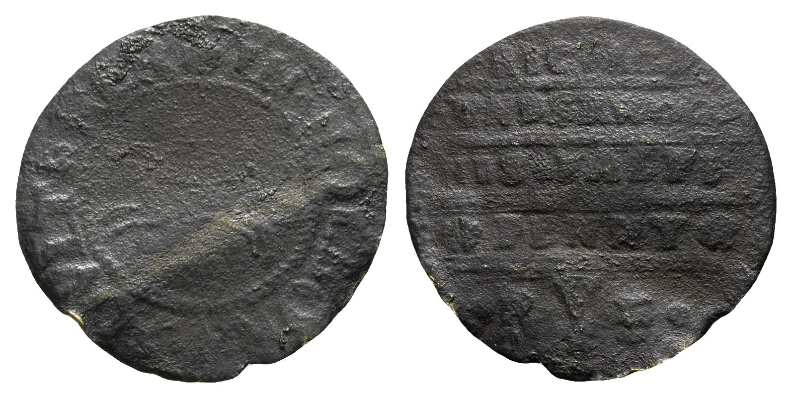 London (Holborn) mint. Richard Underwood, issuer. ✿ IN HOLBORN • POVLTERER, hare running to left / RICHARD UNDERWOOD HIS • HALFE ✿ PENNY ✿ • R V E • in five lines. Dickinson 1475. 0.70gr, 18mm, 12h.