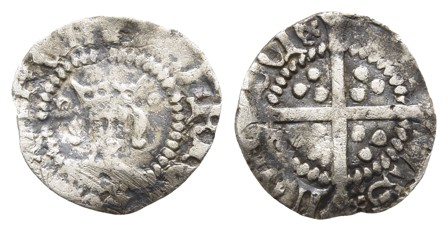 Crowned facing bust; broken annulets flanking / Long cross pattée; triple pellets in quarters. North 1409; SCBC 1794. 0.46gr, 13mm, 9h.