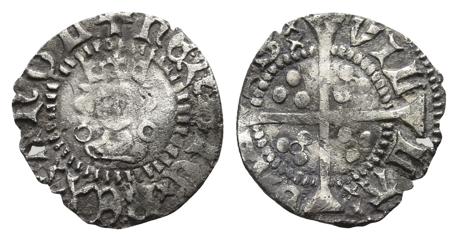 Calais mint; i.m: cross 5. Annulet issue; struck 1422-1430. (Cross) ҺЄNRIC xx RЄX xx ANGL, crowned facing bust; annulets flanking / VIL-LA xx CAL-IS xx, long cross pattée; triple pellets in quarters, additional annulets in second and third quarters. North 1435; SCBC 1849. 0.48gr, 13mm, 12h.
