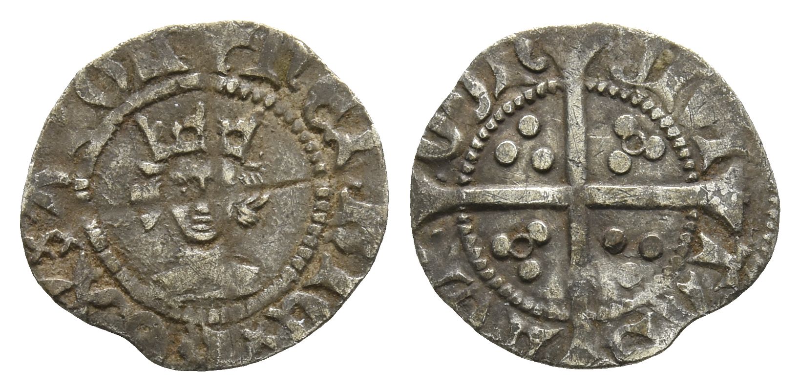 (Incurved pierced cross) ҺЄNRIC xx RЄX xx ANGL, crowned facing bust / CIVI-TAS LOꞂ-ᗡOꞂ, long cross pattée; triple pellets in quarters, additional annulets in second and third quarters. North 1434; SCBC 1848. 0.38gr, 14mm, 12h.