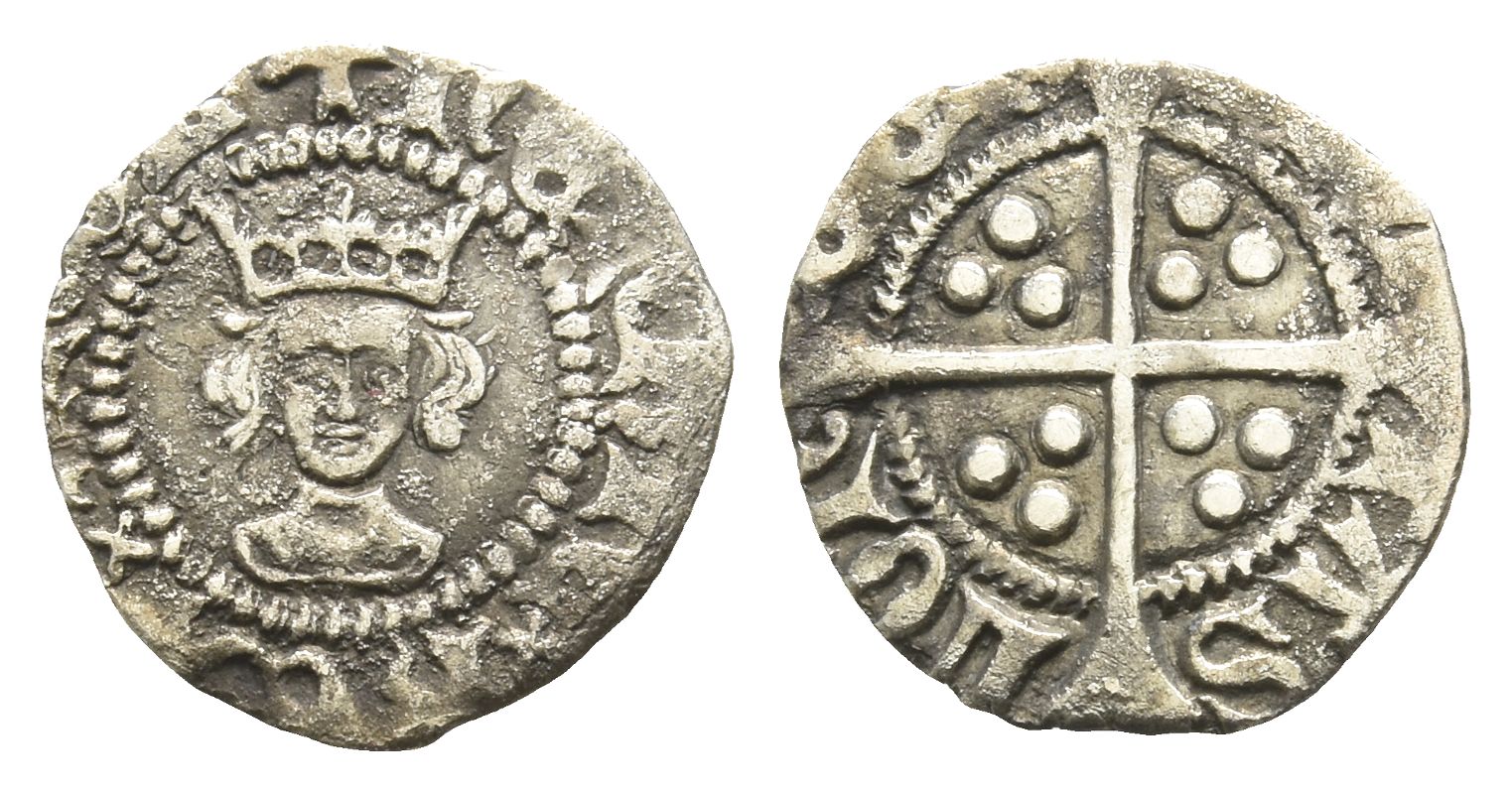 ✠ ꞂЄnRIC ˣ RЄX ˣ AnGL, crowned facing bust; leaf on breast(?) / CIVI-TAS LON-DON, long cross pattée with trefoils in quarters. Cf. North 1492; cf. SCBC 1905. 0.47gr, 12mm, 8h.