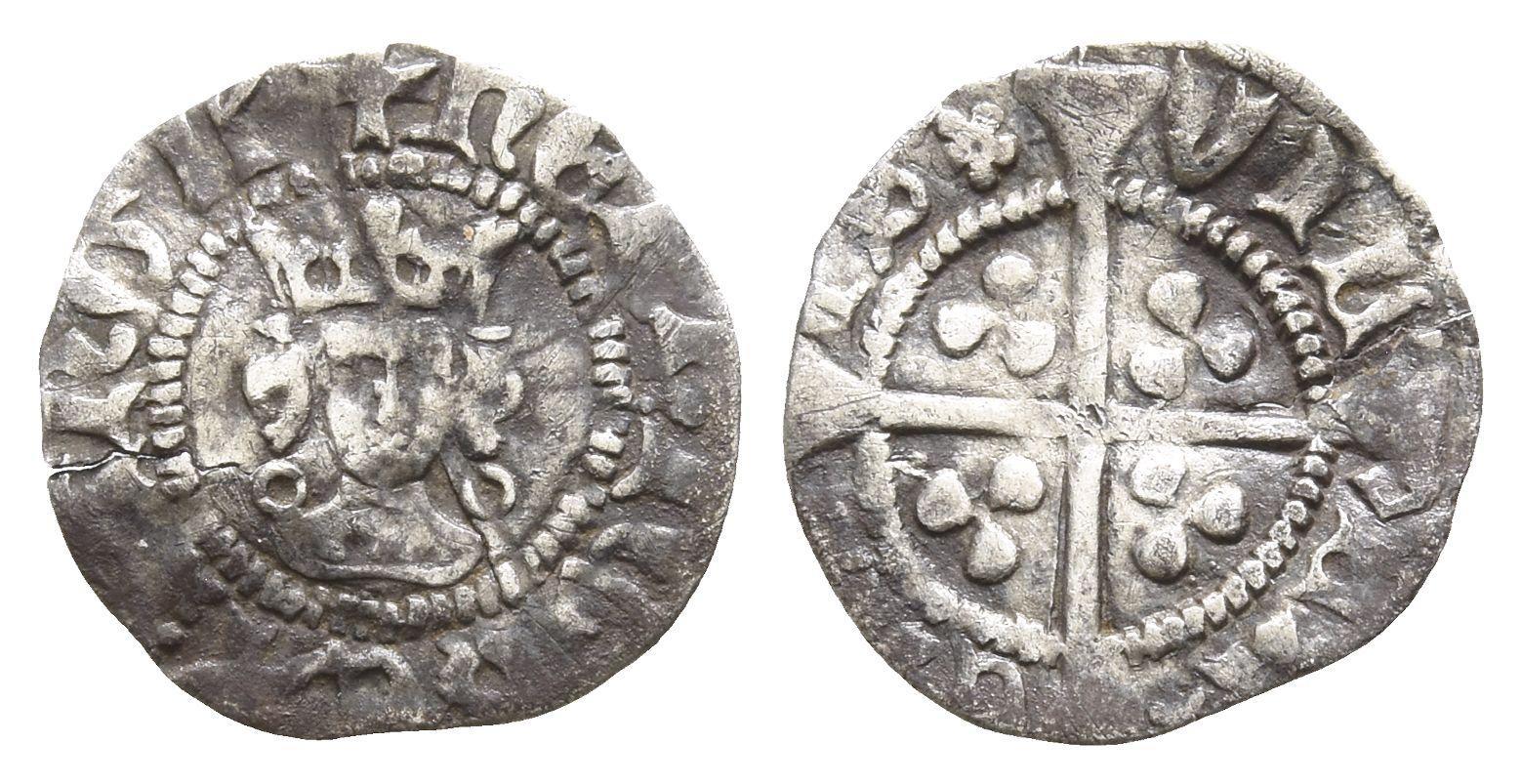 (Cross V) ҺЄNRIC ˣˣ RЄX ˣˣ ANGL', crowned facing bust, annulets flanking neck / VIL-LAˣˣ CAL-IS (rosette), long cross pattée, three pellets in angles. North 1435/1454; SCBC 1849/1871. 0.31gr, 14mm, 2h.