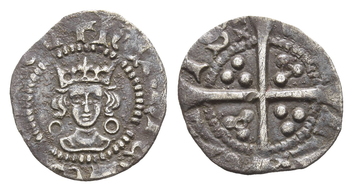 (Plain cross) ҺЄNRIC ˣˣ RЄX ˣˣ ANGL', crowned facing bust, annulets flanking neck / VIL-LAˣˣ CAL-ISˣˣ, long cross pattée, three pellets in angles. SCBC 1849. 0.42gr, 13mm, 8h.