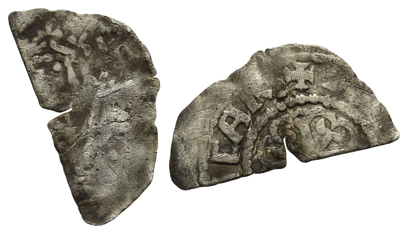 Possibly Carlisle or Cardiff mint. Uncertain moneyer. Struck circa 1136-1145. Cross moline ('Watford') type. Illegible inscription, crowned and diademed bust to right holding sceptre in right hand / ✠[...]CAR, cross moline with fleur in each angle. North 873; SCBC 1278. 0.63gr, 21mm, 9h.