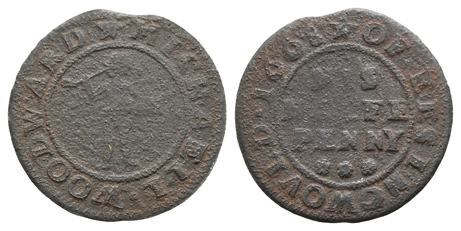 Back to previous pageEngland. North Yorkshire, Easingwold, Michaell Woodward AE Half Penny Token. Dated 1668.