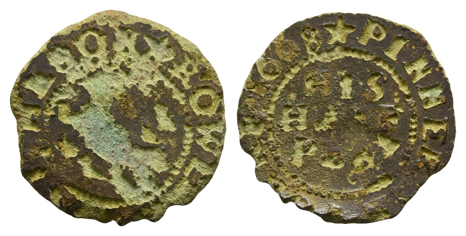 ★ ROWL[AND • RIC]HESON, hen and chickens / ★ PINNER [• IN • YOR]KE • 1668, HIS HALF PENNY in three lines. Dickenson 428. 0.80gr, 16mm, 12h.