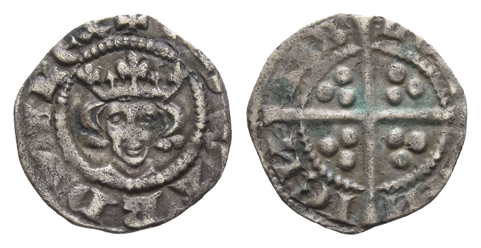 + ЄDWARDVS RЄX, crowned facing bust / LOИ-DOИ-IЄИ-SIS, long cross pattée; three pellets in quarters. North 1052; SCBC 1444. 0.39gr, 12mm, 6h.