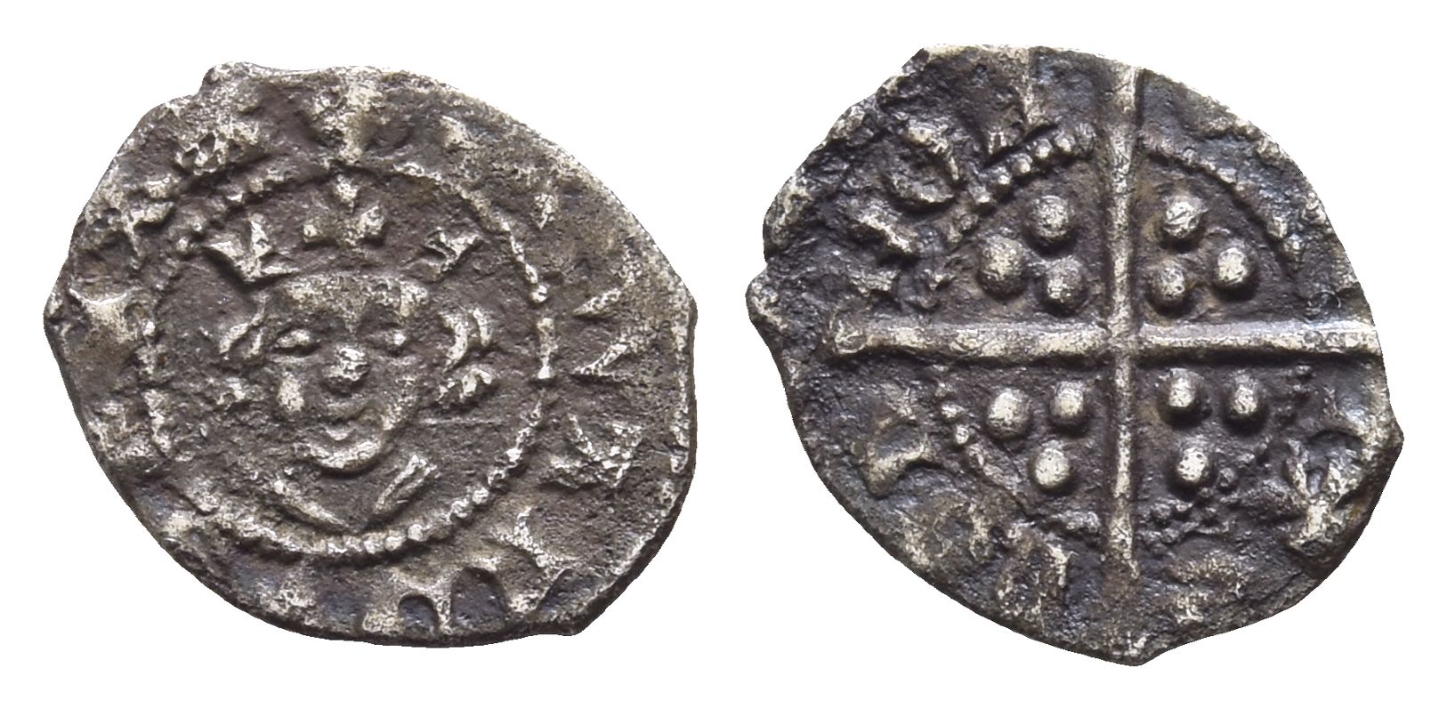 ✠ ЄDWARDVS RЄX A, crowned facing bust / CIVI-TAS LON-DON, long cross pattée; triple pellets in quarters. SCBC 1450. 0.29gr, 11mm, 4h.