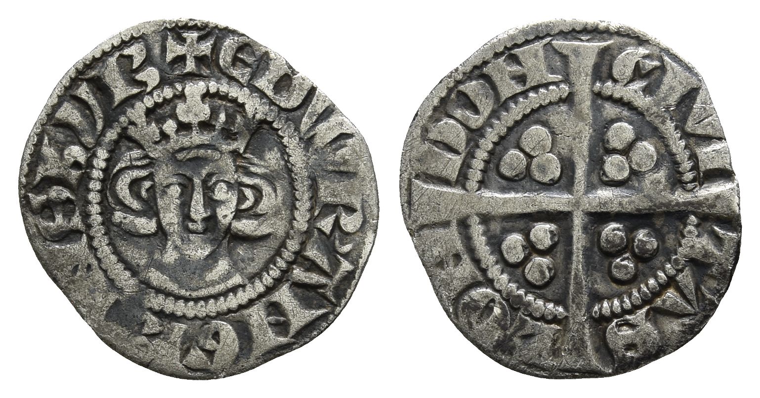 London (Tower) mint. Struck circa 1280-1281. New coinage, class 3b. ✠ ЄDWR' ANGL [D]NS ҺУB, crowned facing bust / CIVI-TAS LON-DON, long cross pattée; trefoil of pellets in quarters. SCBI 39 (North), 956; North 1044; SCBC 1431. 0.61gr, 15mm, 8h.