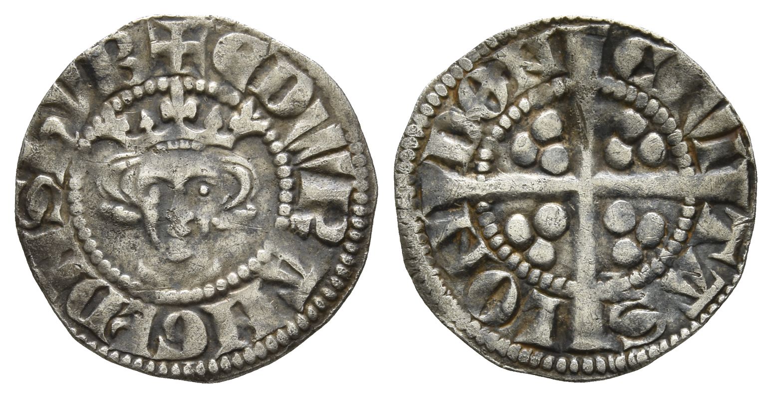 London mint. Class 1d. + ЄDW R ANGL’ DNS hyB, crowned facing bust / CIVI-TAS LON-DON, long cross with three pellets in each quarter. North 1013; SCBC 1383. 1.39gr, 19mm, 3h.