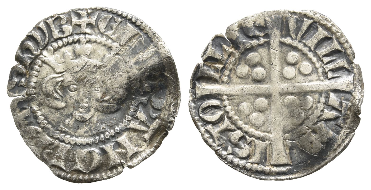Bristol mint. New coinage, class 3d. Struck circa June 1280-circa December 1281. ✠ ЄDW R ' ANGL' DNS ҺУB, crowned facing bust / VILL-A BR-ISTO-LLIЄ, long cross pattée; triple pellets in quarters. SCBI 39 (North), 113; North 1019; SCBC 1416. 1.30gr, 20mm, 4h.