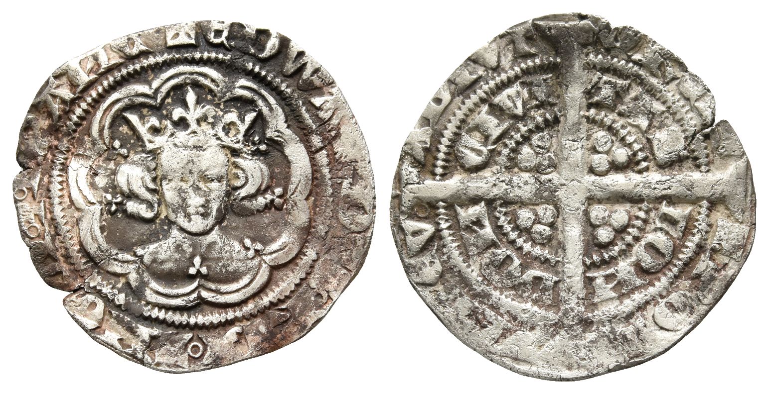 London mint; i.m: cross 1. Pre-Treaty Period. Series D; struck 1352-1353. ✠ ЄDWARDVS ◦ RЄX ◦ ANGLII ◦ Z ◦ FRAͶC, facing crowned bust within tressure of arches / ✠ POS-VI DЄV ADIVT-ORЄM and CIVI-TAS LON-DON, long cross pattée with three pellets in each quarter. North 1154; SCBC 1575. 2.14gr, 21mm, 6h.