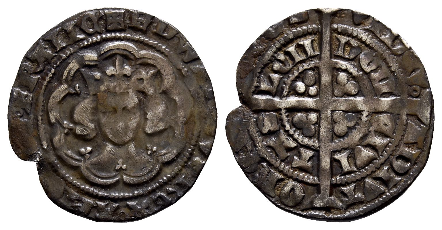 England. Plantagenet, Edward III AR Halfgroat. Struck 1351-1352. London (Tower) mint; i.m: cross 1. Fourth coinage, Pre-Treaty Period. Series C.