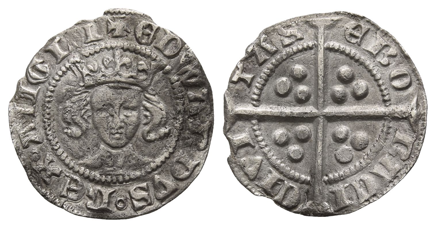 York mint. Pre-treaty Period 1356-1361. Series D. ✠ EDWARDVS o REX o ANGLI, facing crowned bust / CIVI TAS EBO RACI, long cross with three pellets in each quarter. SCBC 1602. 0.92gr, 18mm, 10h
