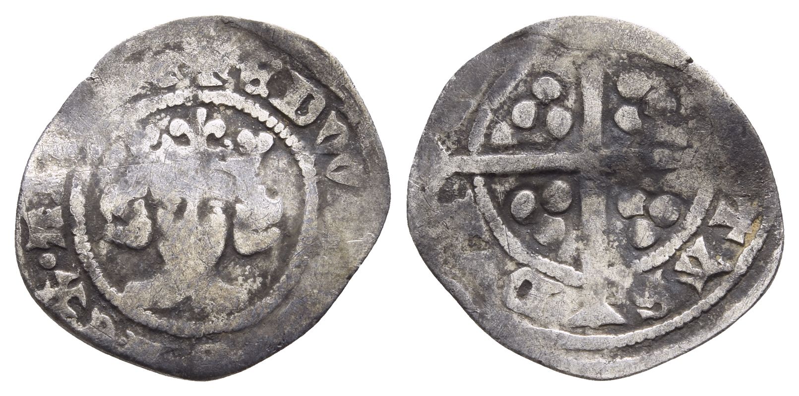 ✠ ЄDW[ARDV]S RЄX • AN[GLI]Є, crowned facing bust / [CIVI]-TAS D[...], long cross pattée; triple pellets in quarters. Cf. SCBC 1628. 0.95gr, 19mm, 12h.