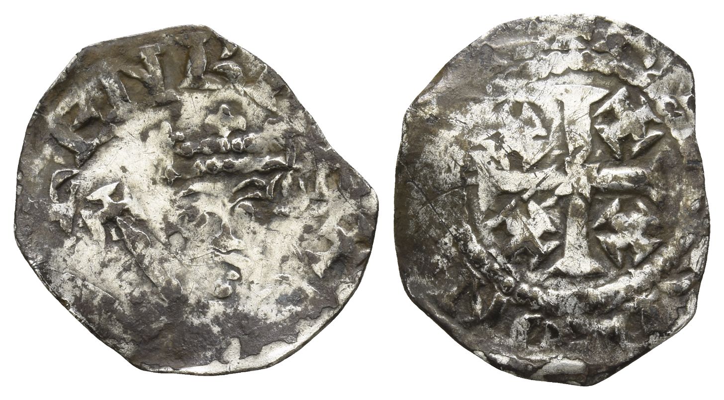 Canterbury mint; Ricard, moneyer. Class E, circa 1170-1174. hENRI RE around crowned facing bust holding sceptre / + RI[CA]RD : ON : [CAN] around large cross potent with a cross in each angle. BMC 603; North 960/3; SCBC 1341. 1.37gr, 20mm, 7h.