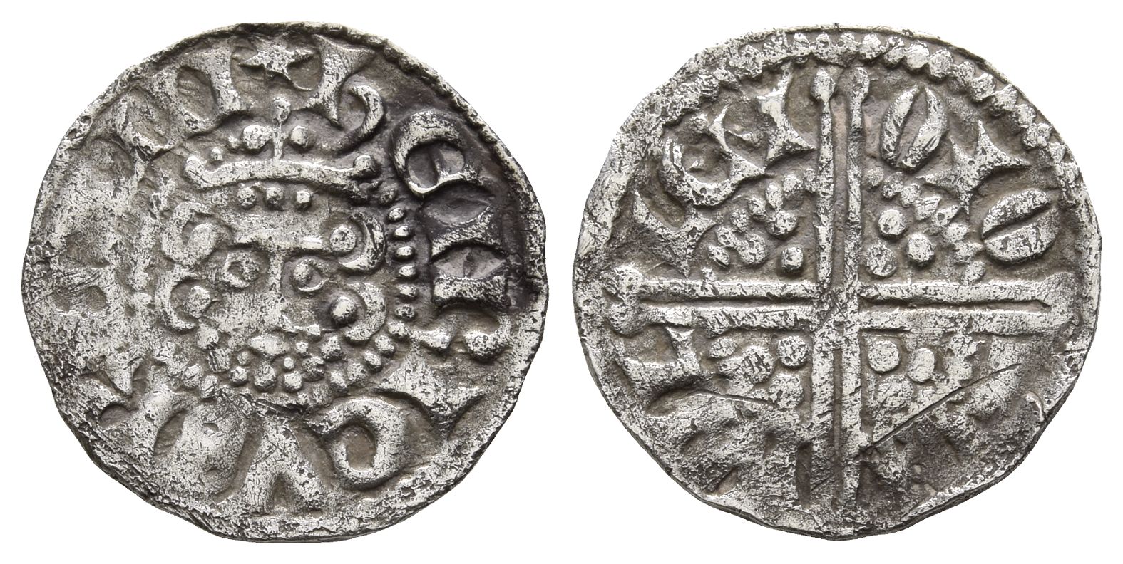 Oxford mint. Willem, moneyer. Class 3b. HENRICVS REX III, crowned facing bust / WIL LEM ONO XON, voided long cross and three pellets in each angle. SCBC 1363. 1.53gr, 18mm, 5h
