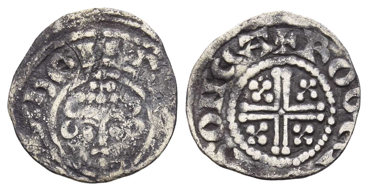 ҺЄnRICVS RЄX, crowned head facing; cross-tipped sceptre to left / ✠ ROBERT [VI]? ON CA, voided short cross; quatrefoils in angles. Cf. SCBC 1356C. 1.35gr, 17mm, 3h.