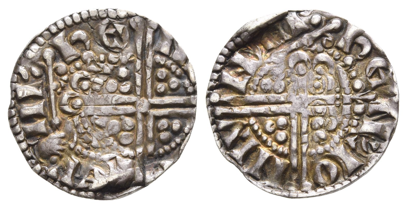 ҺЄNRICVS RЄX III', crowned facing head holding lis-tipped sceptre to left / ҺЄN-RI O-N LV-NDЄ, long voided cross with central pellet, quatrefoils in each angle. Cf. SCBC 1367A. 1.33gr, 18mm, 7h.