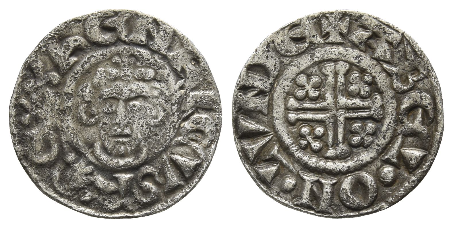 London mint; Abel, moneyer. Short Cross type, class VIa2. Struck in the name of Henry II, circa 1210-circa 1213. ҺЄNRICVS R-ЄX, facing crowned bust holding cross-tipped sceptre to left / ✠ ABЄL • ON • LVNDЄ (ND ligate), short voided cross, quatrefoils in each angle. North 974/2; SCBC 1353. 1.38gr, 17mm, 11h.