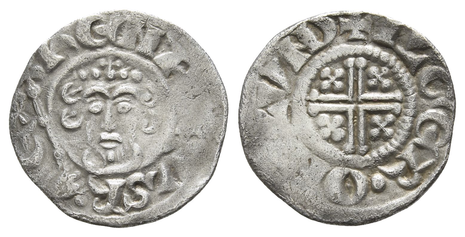 London mint; Ilger, moneyer. Short cross type, class Vc. Struck in the name of Henry II, 1207-circa 1210. ҺЄNR[IC]VS R-ЄX, facing crowned bust holding cross-tipped sceptre to left / ✠ ILGЄR • ON [•] LVND (ND ligate), short voided cross, quatrefoils in each angle. North 971; SCBC 1352. 1.31gr, 18mm, 1h.