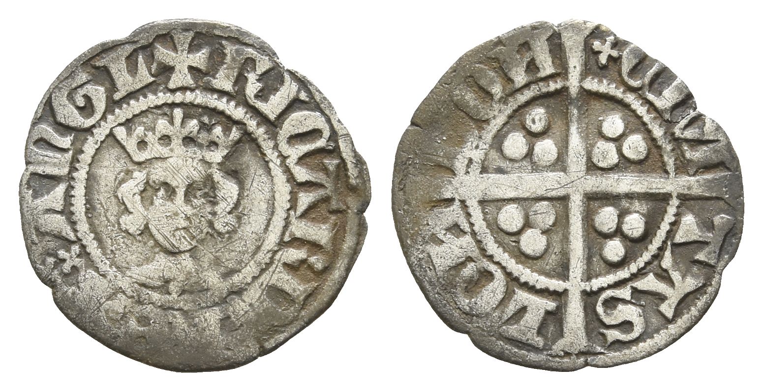 ✠ RICARD RЄX ˣˣ ANGL, crowned facing bust / ˣ CIVI-TAS LOͶ-DOͶ, long cross pattée; three pellets in quarters. Cf. SCBC 1700. 0.49gr, 14mm, 9h.