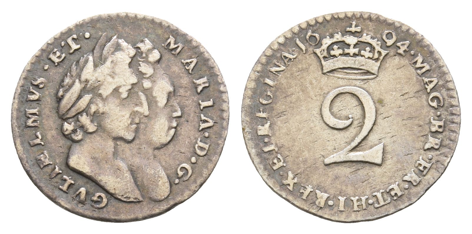 England. Stuart (Orange), William and Mary AR Twopence. Dated 1694.