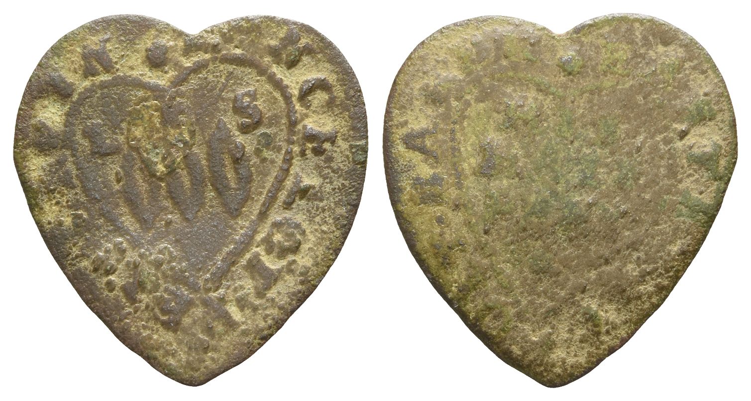 England. Suffolk, East Bergholt, Lancelot Felton, Baker AE Heart Shape Halfpenny Token. 17th century AD.