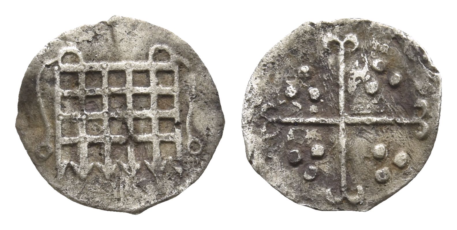 Portcullis / Cross moline; triple pellets in quarters. North 2018; SCBC 2581. 0.19gr, 10mm.